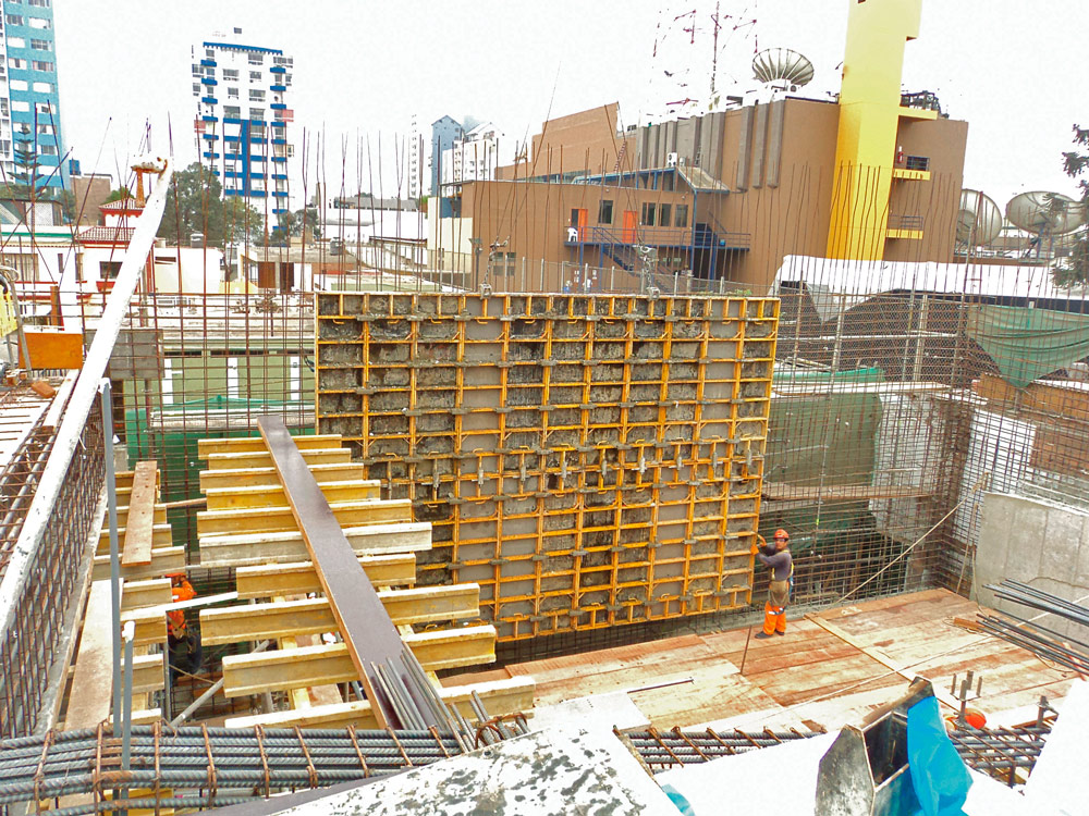 Under these conditions, NEVI vertical formwork was favoured for its ease of assembly and few accessories. Large 8 x 4 m formwork units were assembled and easily moved by crane.