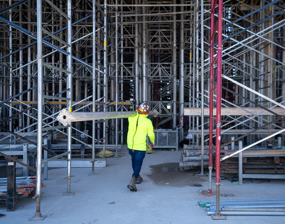 28-90 Review Ave, a large complex parking lot that allows multiple vehicles of any kind to have the ability to park and store. We were able to use our MEGAFRAME system for the deck, a frame that connects to each other via cross braces which space the frames at set distances. Attached to the frame system was our ENKOFLEX under massive beams, an adaptable that provides great versatility. To support the high shoring levels of each floor we had to combine both systems to maximize the structures stability, alongside our ALUPROP SHORING TOWERS we were able to provide longer durability and easy to use height adjustments. For the core walls and columns, the MEGALITE system was utilized as it is versatile for both solutions. Given the ramp being constructed and various high levels of shoring system, it was the best option to supply as much shoring material as possible and in the time frame it was required. Throughout the project we introduced our RKS climbing system, that enables panel climbing without separating the structure from the wall