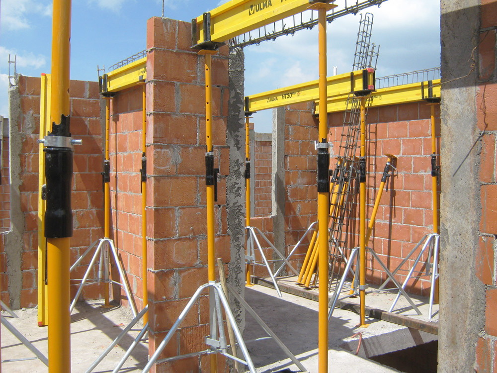 The homes, with lightened slabs, were formed with ENKOFLEX. Since this is a formwork made up of independent beams, the system offers high versatility and may be adapted to irregular slabs. ENKOFLEX was supported on SP Props through double heads VR. Various structures, like the parapets, were cast with COMAIN system. This formwork is adequate for any type of construction work in which no crane is available and a good finish is required.