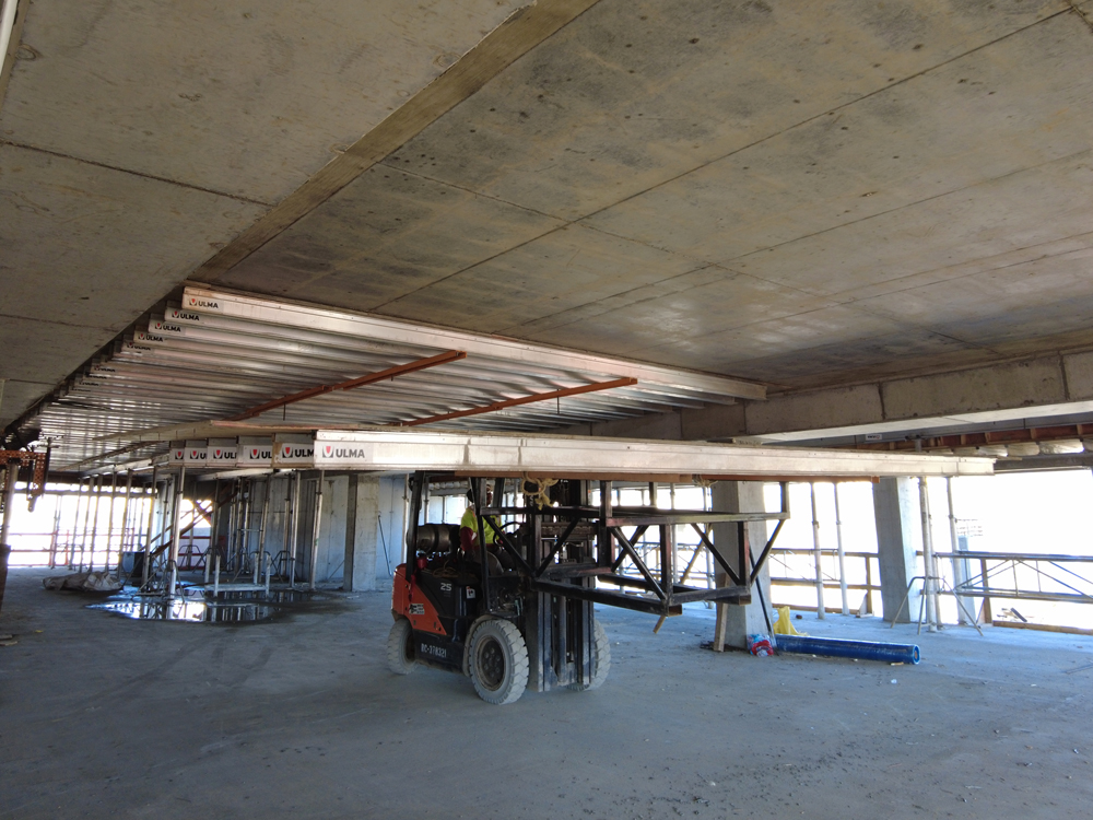 Along with the GBS system ENKOFLEX was used because is a beam slab formwork system adaptable to most any type of slab and height configuration. Independent beams provide great versatility.