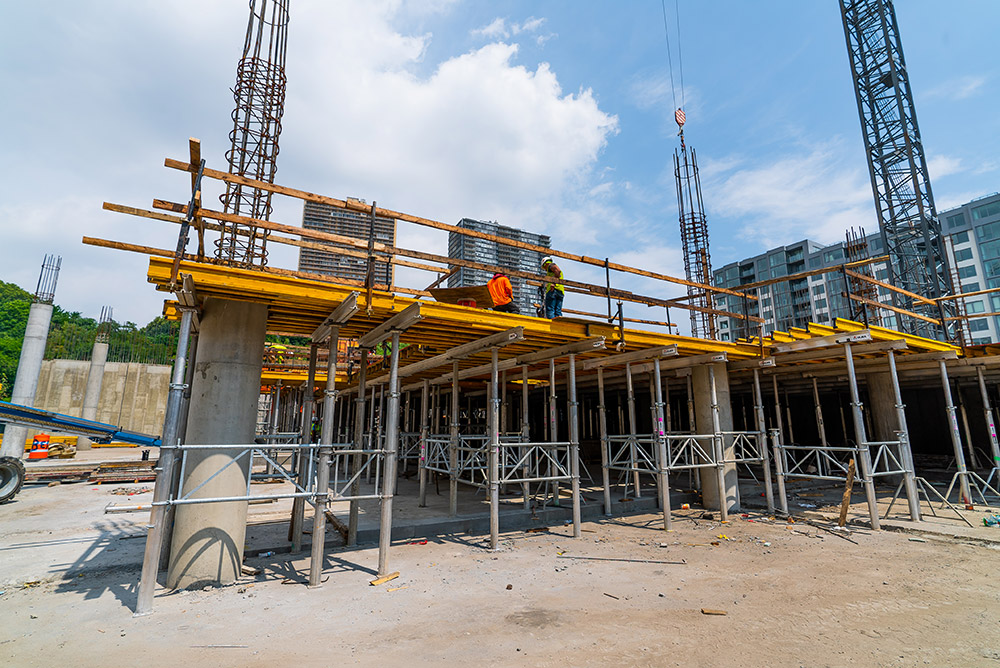 Concrete Systems choose ULMA’s ENKOFLEX shoring system to build the concrete slabs ranging from 20,000 to 30,000 SQF. The wood beam slab formwork system is adaptable to any type of slab and height configurations. That allows the customer to build multi-level slabs at various angles in an easy way. The independent beams provide great versatility to adapt to any grid dimensions. The slabs were formed using a 7’ by 7’ grid.