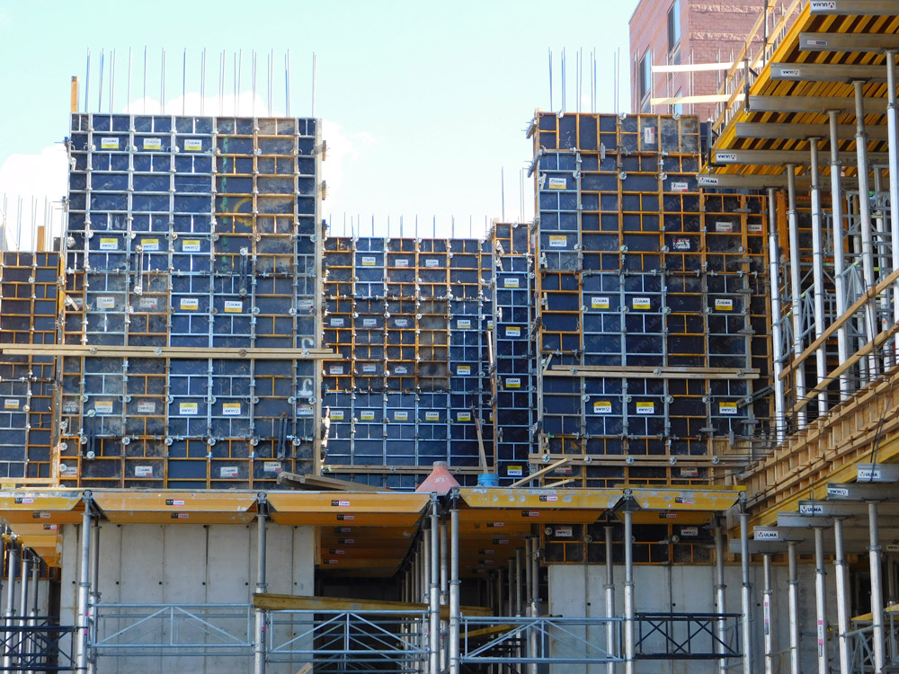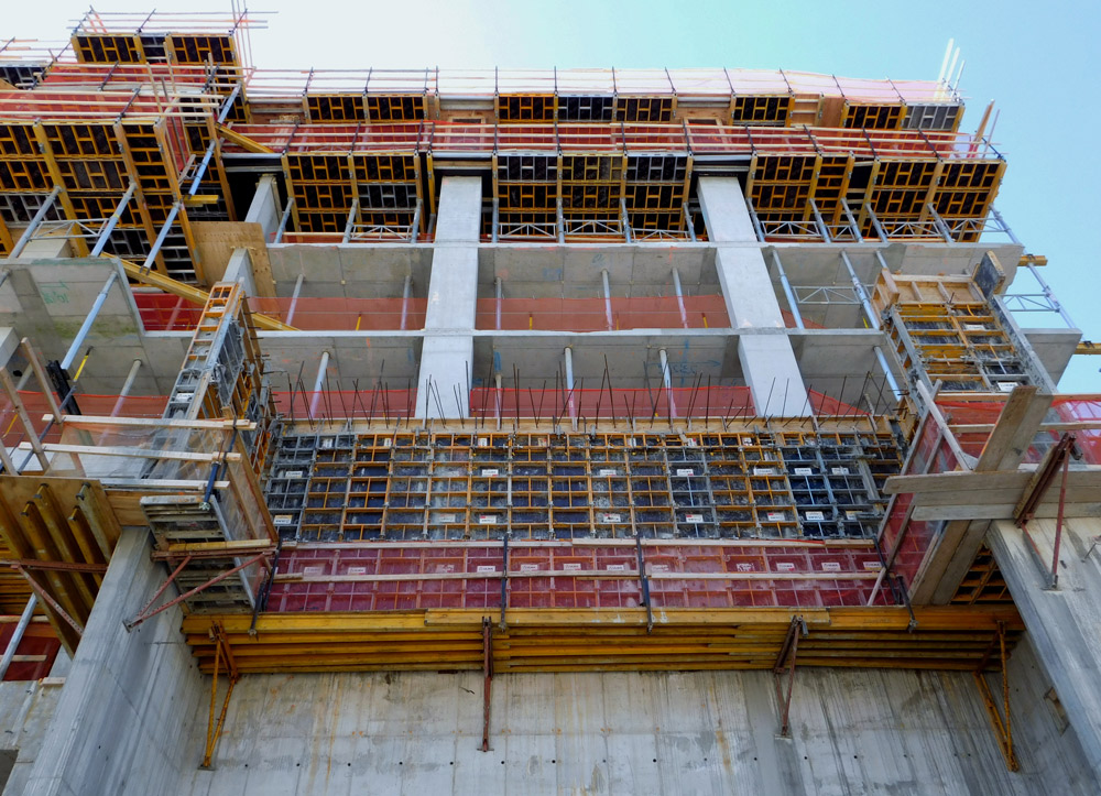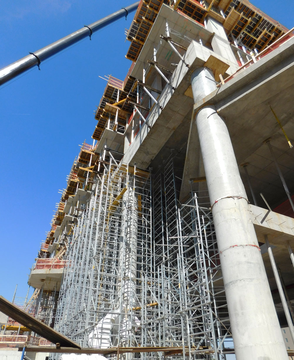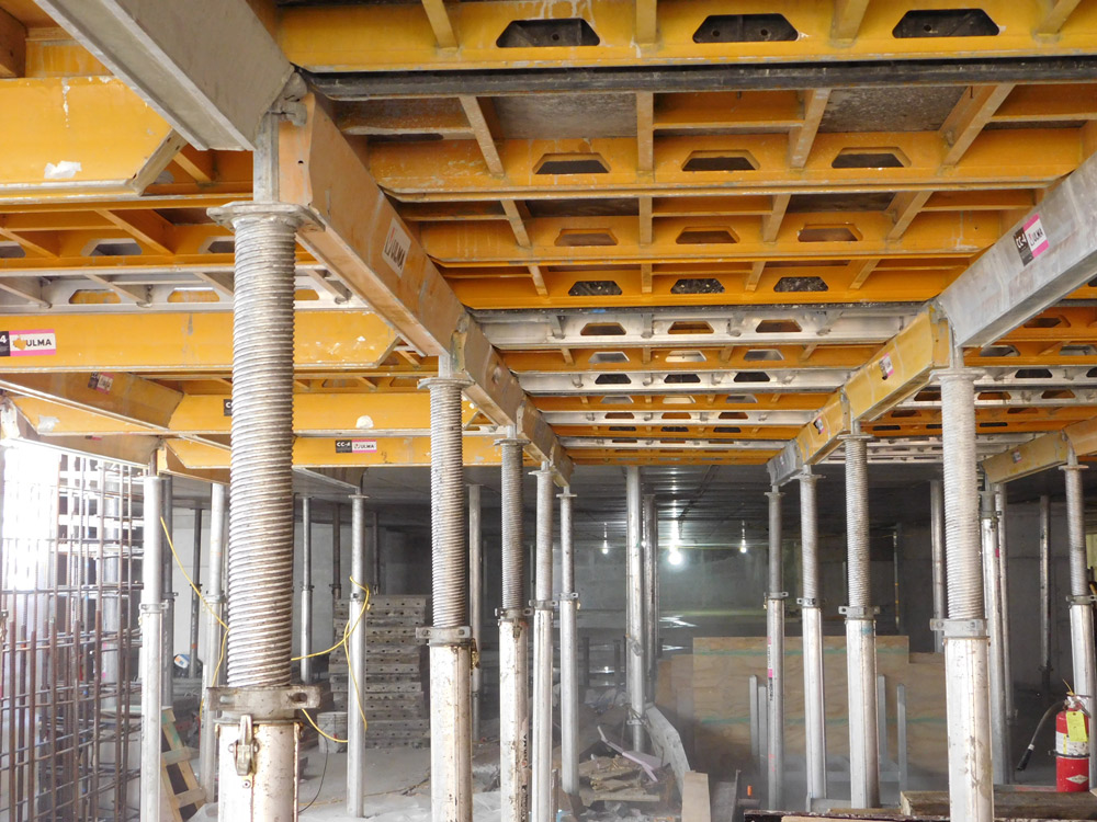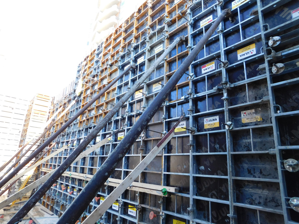 CC-4 aluminium formwork, ideal for large slab surfaces proved deal for building the main towers, the parking areas, and the commercial spaces.