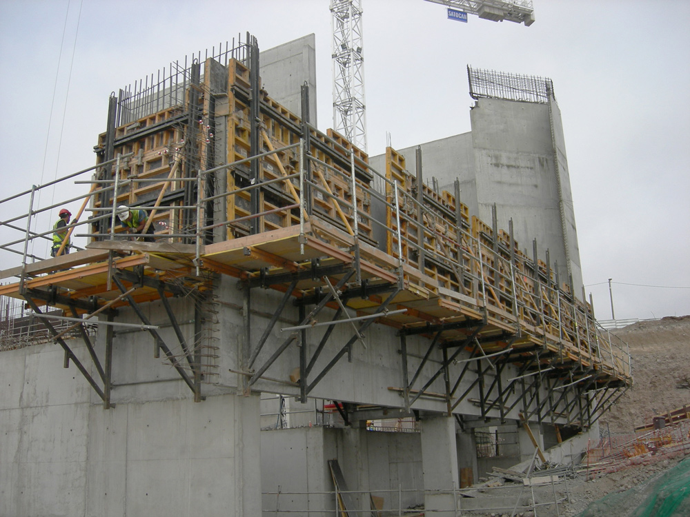 - Outside: 21 m2 big formwork units on climbing bracket.