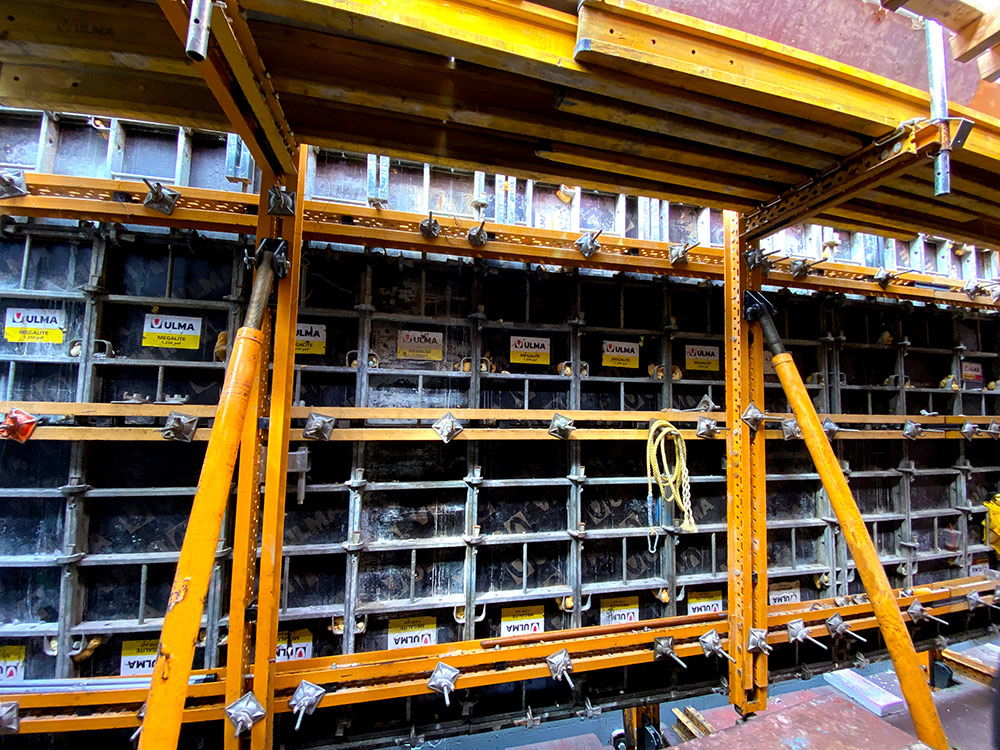 For panel climbing and safe lifting operations, Rail Climbing Formwork RKS will be used. This system ensures safe climbing at height due to the rails attached to the walls. It is versatile and can be lifted by a hydraulic mechanism or without crane assistance.