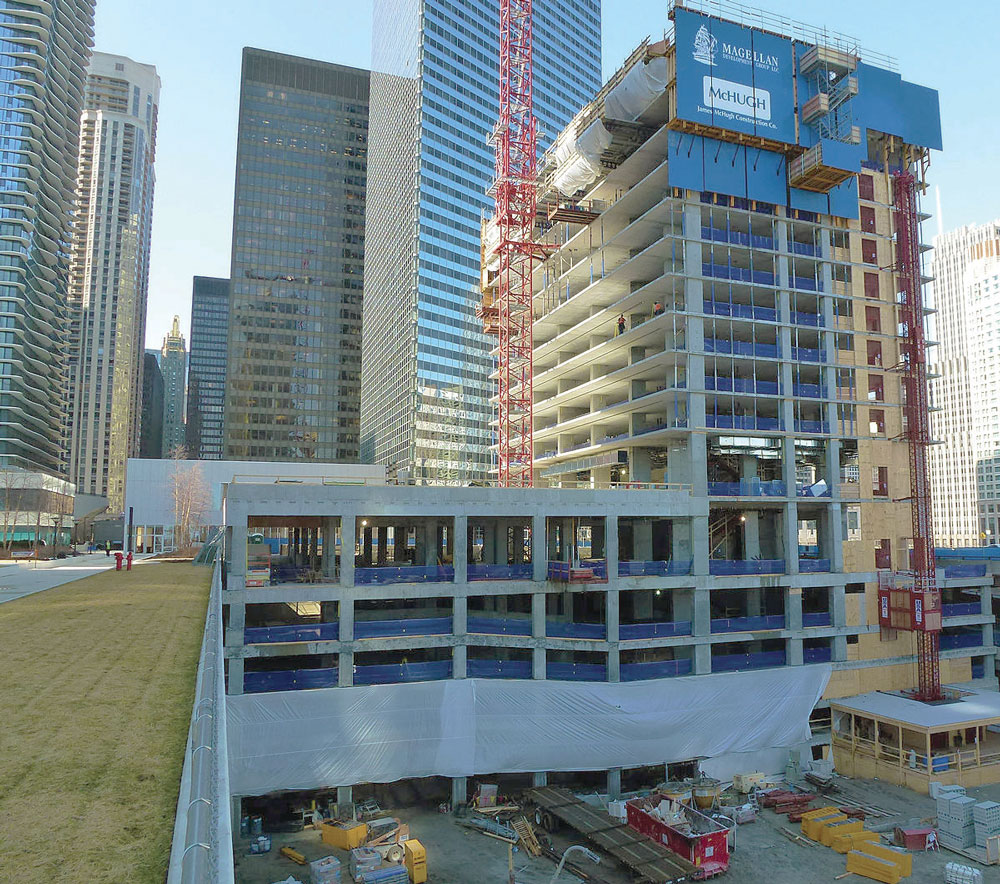 The avant-garde design of the east and west façades include curtain walls in a combination of translucent porous glass and aluminum. Its balconies at the north and south façades provide magnificent views of Chicago and Lake Michigan.