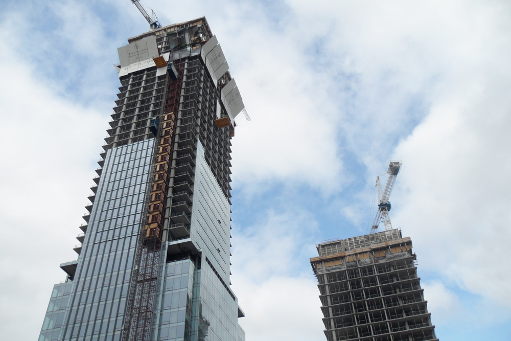 Its location in the city center required for additional measures and made it a pioneering project in the use of the Hydraulic Windshield System HWS. The protective screens placed around the entire perimeter of the building fulfil the double function of securing works at the slab currently under construction and the next two, and provides platforms for access or storage.