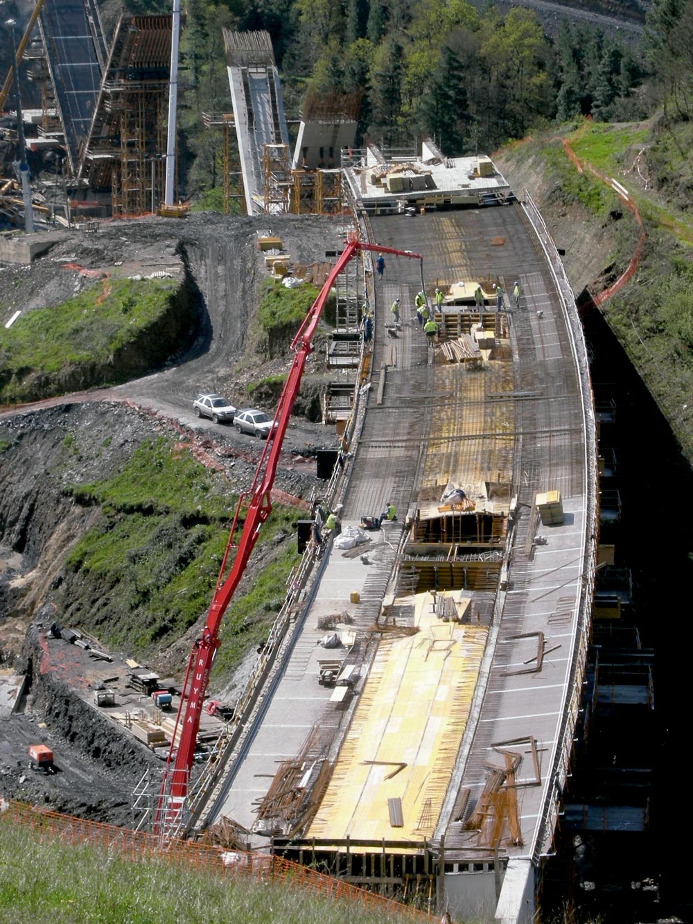 Self-compacting concrete was used in the pouring process of the piers, which means that vibrators were not required. This way, a better concrete quality and finish was achieved and the appearance of imperfections was prevented.