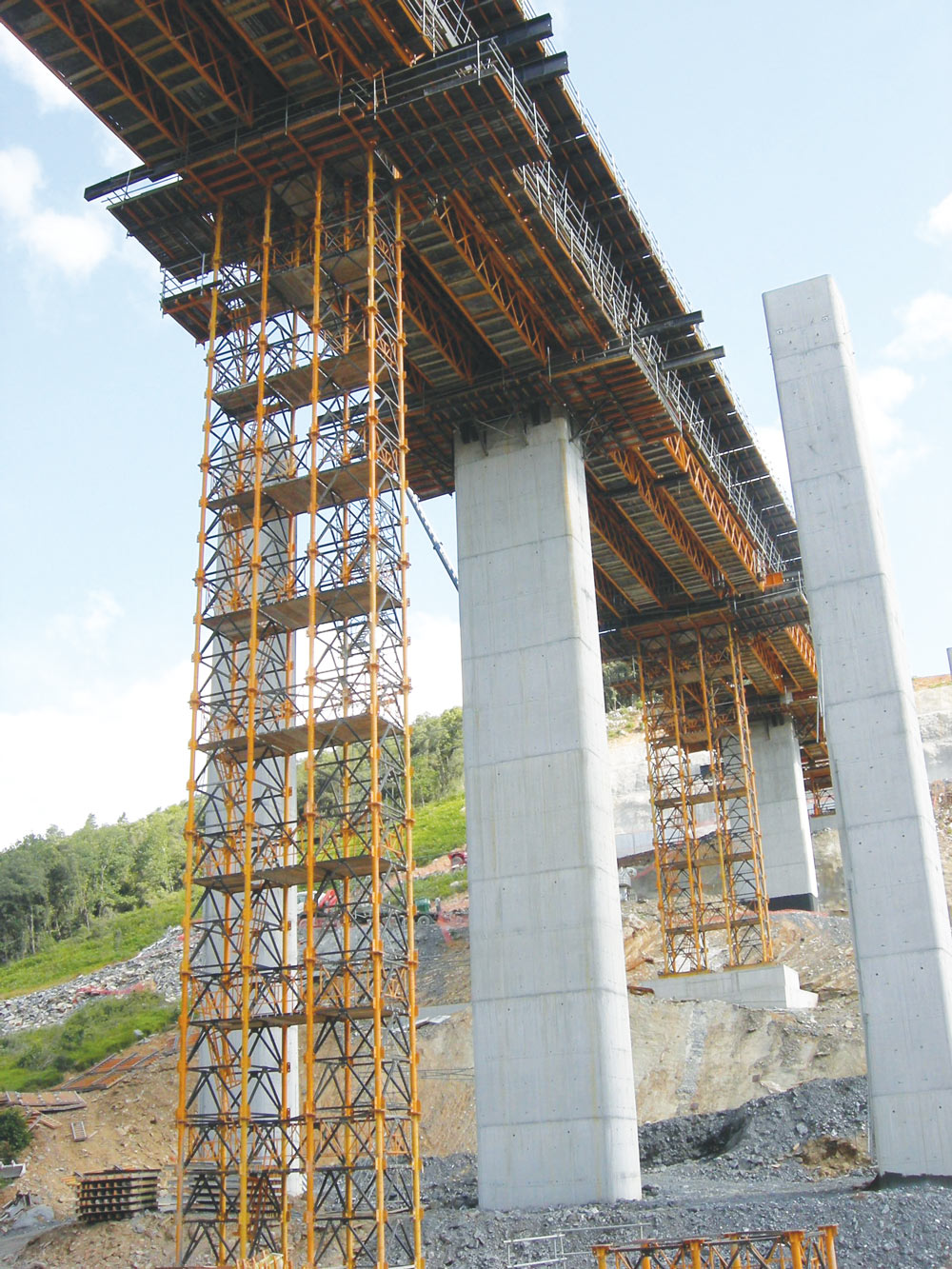 Being 223 m long, each deck is supported on four piers with a maximum height of 41 m and a span between piers of 49 m. A special construction process with less supports on the ground was applied to minimize the environmental impact.