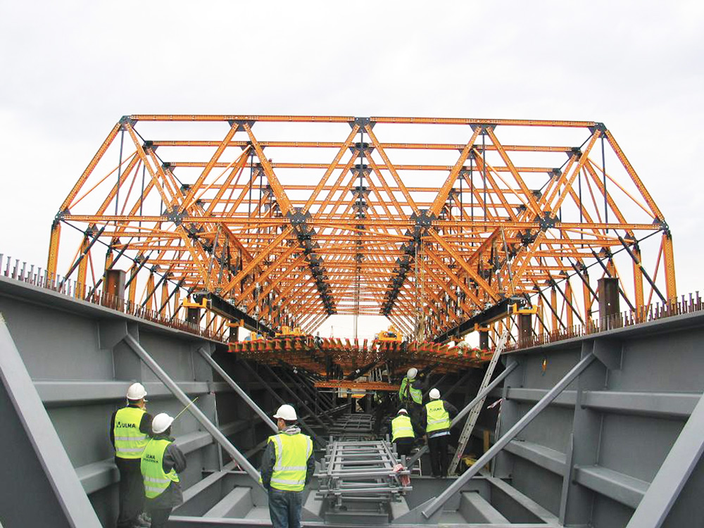ULMA supplied the material for the construction of the steel-concrete composite bridge deck, abutments, piers, overpasses and retaining walls. A form carrier consisting of standard MK system components was used to build the bridge deck wings. This structure split into 3 modules to ease the assembly provides the necessary stiffness yet without making the structure excessively heavy. Moreover, it offers a standard custom-made solution and thus ensures maximum cost-effectiveness.
