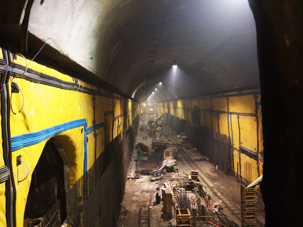This massive project included installation and testing of a waterproofing system and construction of the cast in place concrete invert, in the Grand Central Terminal (GCT) East and West Station Caverns. Installation of waterproofing, inverts, linings, embedded MEP and interior structures for the GCT 1 & 2 caverns, and tunnels located South of the GCT Station Caverns and construction of the 38th St Ventilation facility and associated surface structures and utilities.