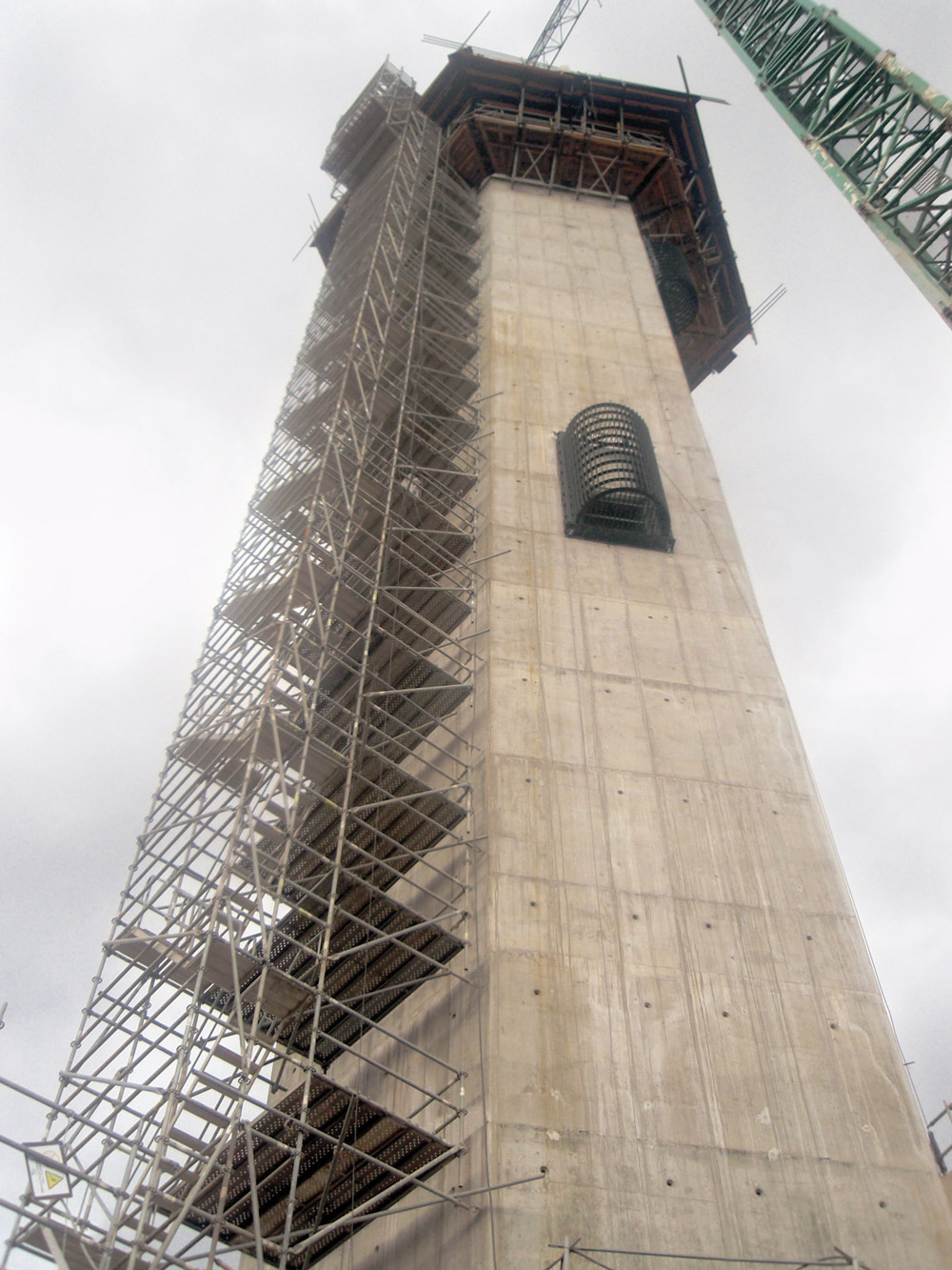 The 90 m high intake tower and valve chamber were built in climbing stages of 2 metres with the Climbing Bracket 2000 and the ENKOFORM V-100 timber beam formwork for the straight walls. The walls of the tower top which have at its last 10 metres a cylindrical geometry with a diameter of 13.5 m were built with FLECTOR circular formwork.
