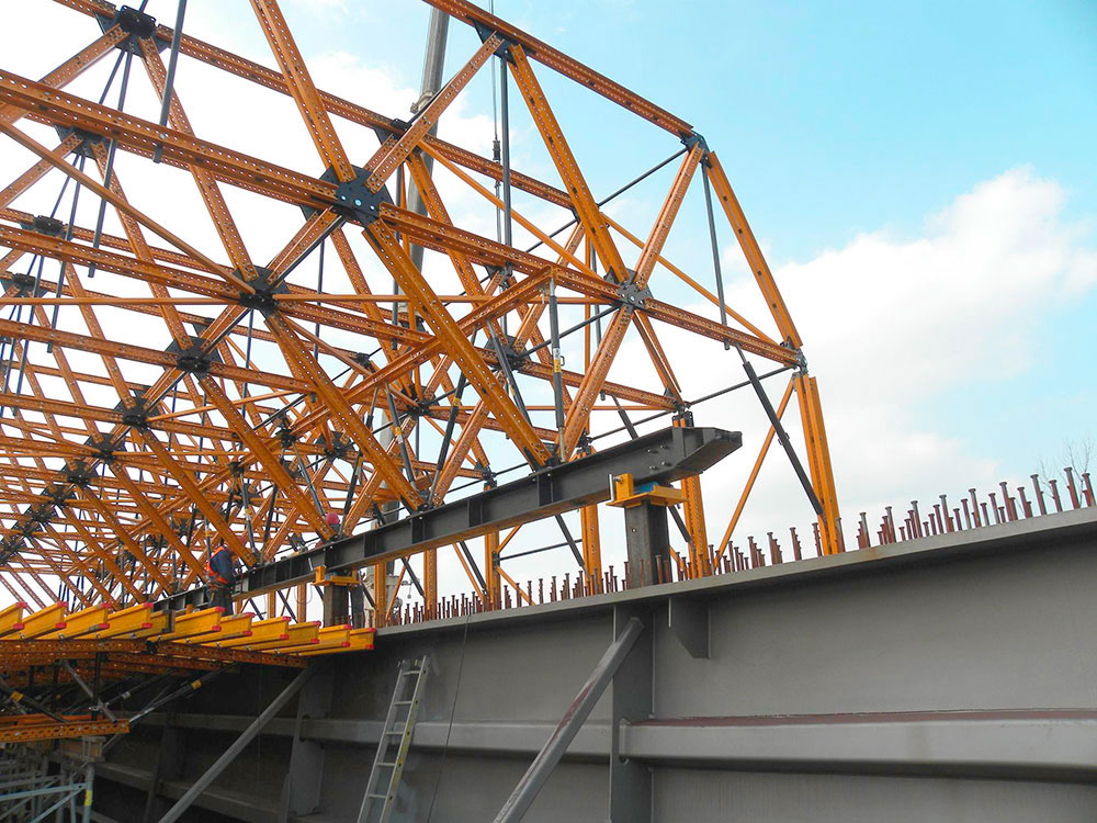 The MK deck flange formwork carriage is efficient system for the construction of deck flanges on metal bridges and partially prefabricated structures.