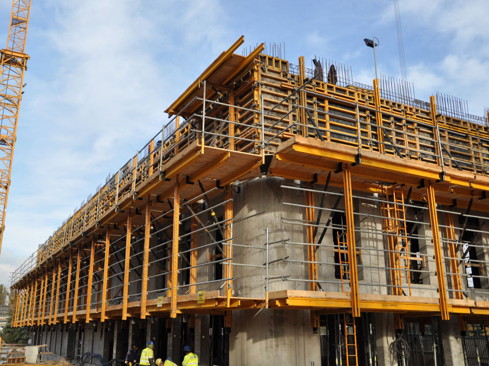 The RKS rail climbing system enables panel climbing without separating the structure from the wall. The guiding system makes the lifting operations safe under most weather conditions.