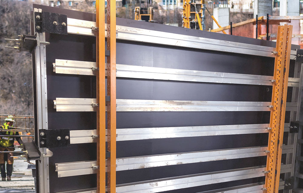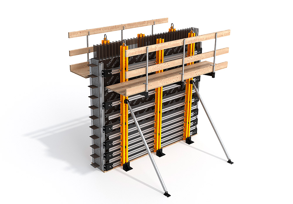 The MK20 FORM Straight is a steel waler and wood or aluminum beam forming system designed for architectural concrete finish walls and large formwork gangs.