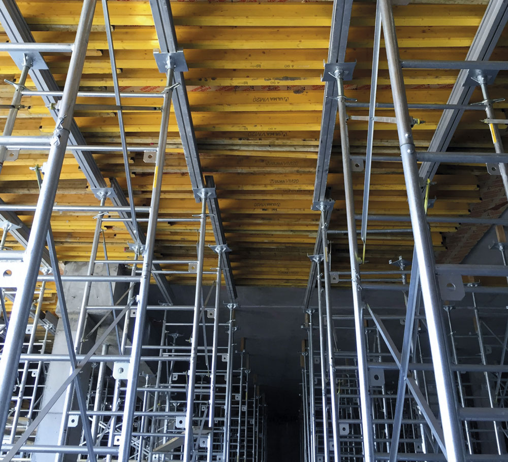 - Multiple shoring heights where there are drop beams and column capitals