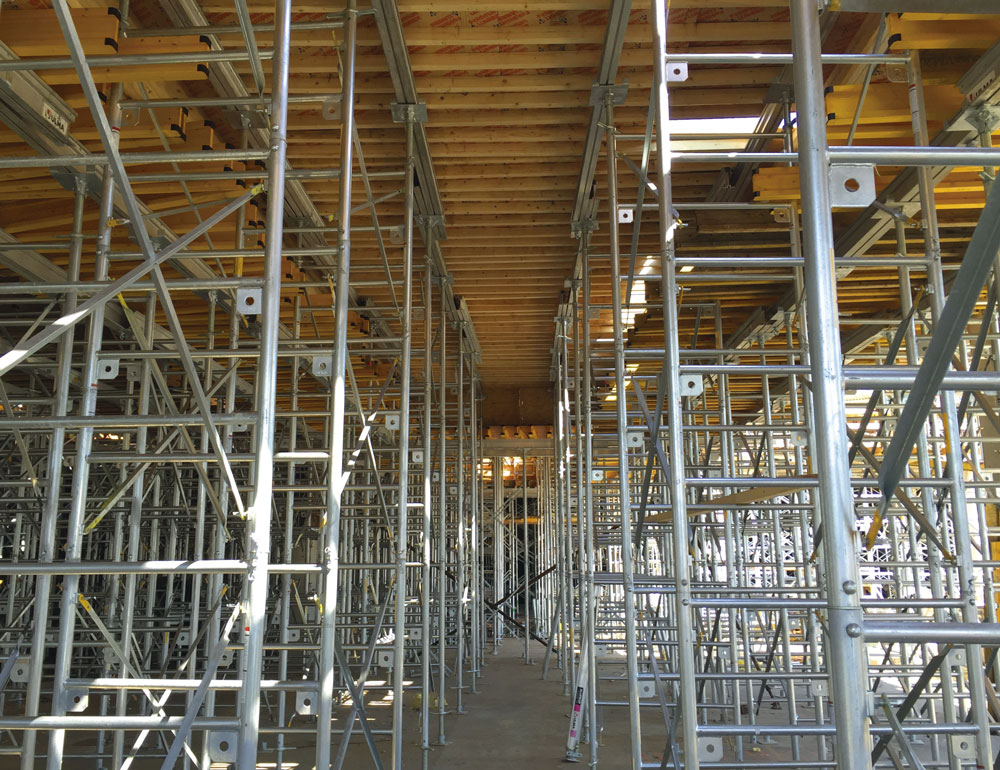 - High-shoring heights such as in building lobbies, mechanical floors, and water storage tanks