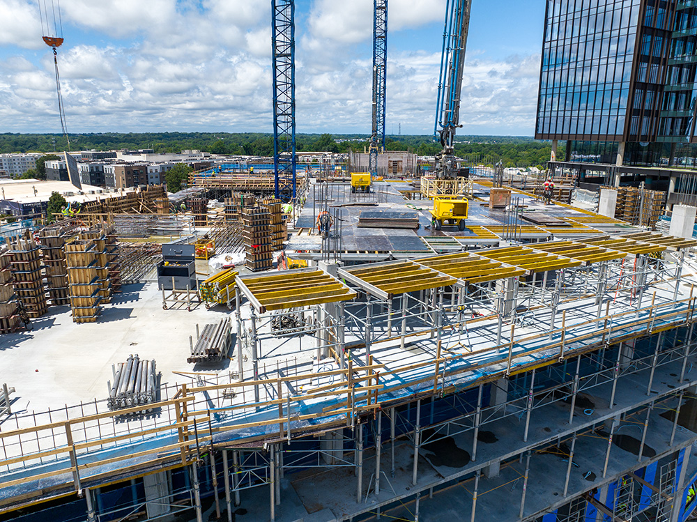 ULMA is honored to play a role in this project by providing our shoring solutions to an up-and-coming apartment and retail space in the south end of Charlotte, North Carolina. With heights reaching up to 212ft, this building contains up to 370 units apartments and a ground floor with 18,700 square foot of retail space, making it an ideal location to reside in. The building is near the center of Charlotte, and in an area filled with a lot of activity. This building has sought after amenities that residents enjoy such as high ceilings. Being a part of this complex project allowed ULMA to cultivate a high-end solution utilizing products to ensure stability.