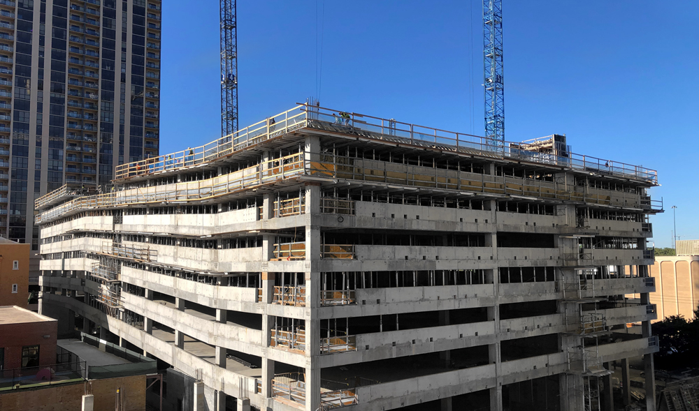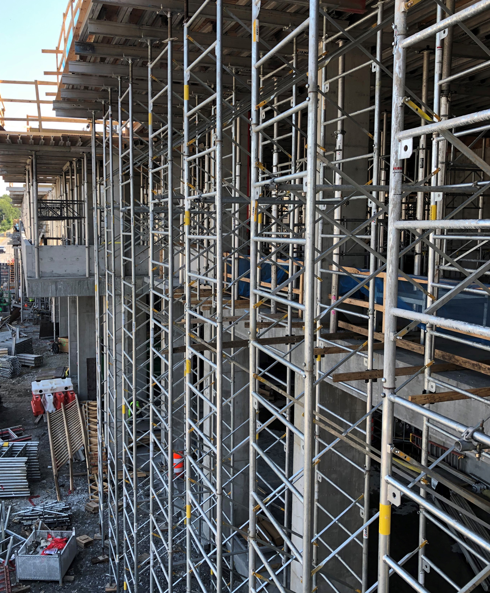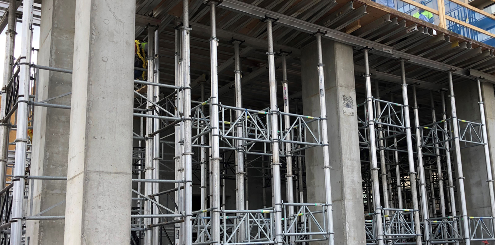 ULMA provided solutions for the construction of the lifestyle hotel, the office, and residential buildings. For the residential part of the project, ULMA supplied nine parking levels using ALUPROPs for 52,000 sq.ft. of the building. The residential tower needed high shoring solutions (40’+) and three re-shore levels; ULMA’s MEGAFRAME towers were the perfect fit. The High shoring for the Apartments was ENKOFLEX, with some MEGAFRAME on the perimeter high shoring