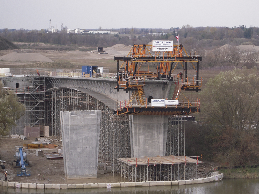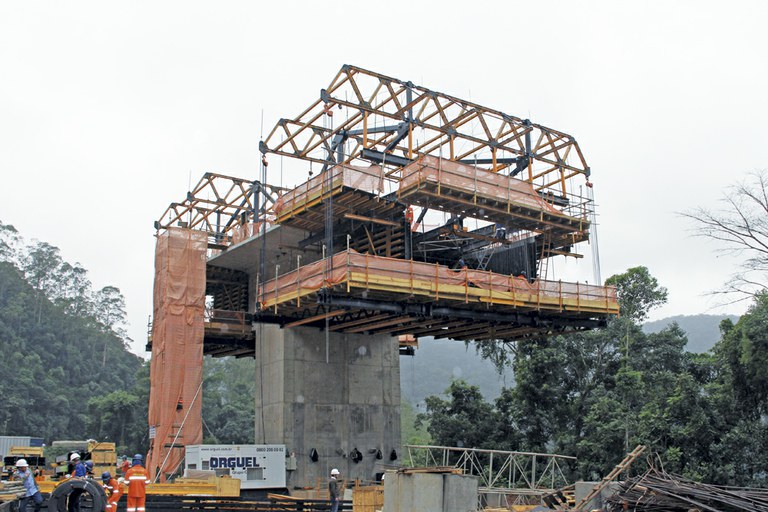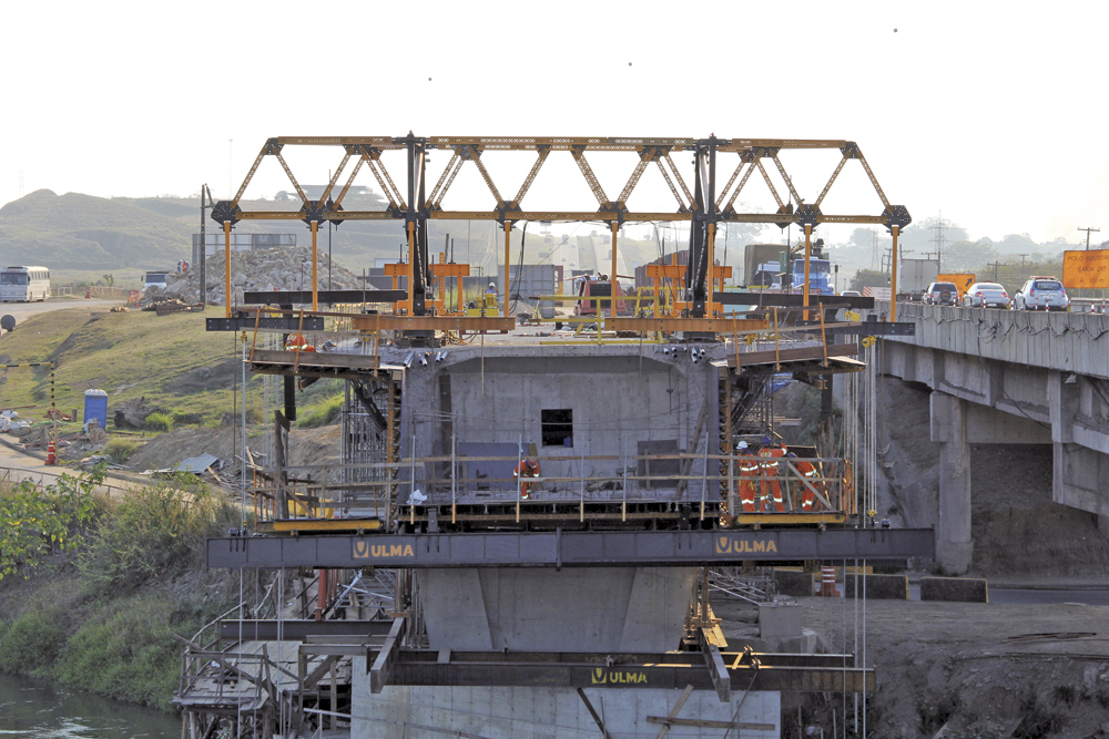 The form carrier is a mobile structure equipped with a hydraulic system that enables the bridge deck to be built by placing incremental segments in situ.