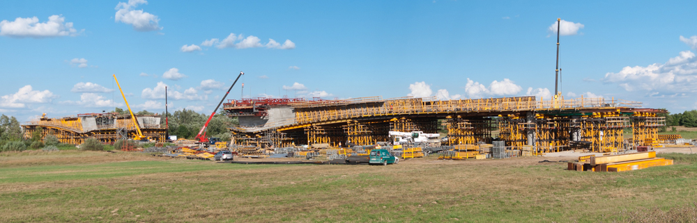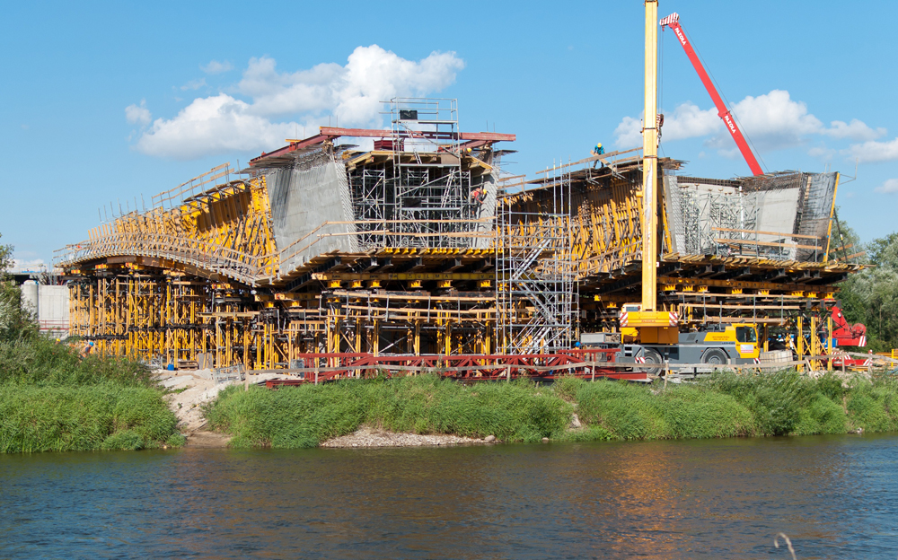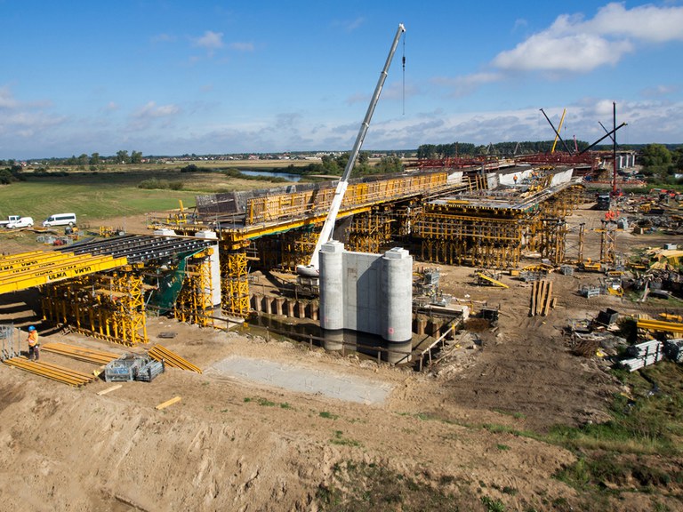 Due to diversified ground conditions, the contractor for the structure (STRUKTURY Sp. z o.o., and DRAGADOS as subcontractor) decided to use diverse methods for constructing the individual load-carrying structure segments. Thus, the initial spans, located over the ground, are constructed traditionally, on stationary scaffoldings, the in-current span – with the use of cantilever carriers, while the two six span segments – with the use of self-launching trusses.