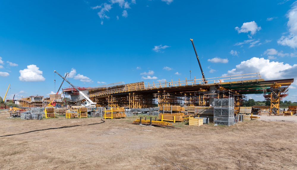 ULMA provides services for this construction regarding, among others, the design and supply of formworks for supporting the initial components in the cantilever method and for constructing the spans adjacent to the current one, constituting a counterweight to the overhang carriers. Due to the ground conditions, a portal solution was employed, based on heavy duty MK towers.