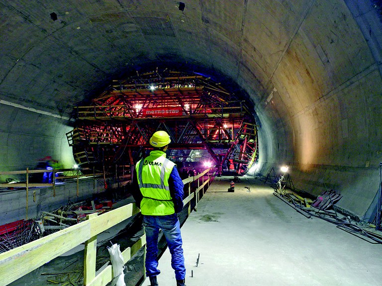 The combination of MK structure and MK formwork is a light form carrier that builds the bored tunnel in successive stages. The forward-moving and levelling system, both hydraulic and manual, is built-in into the structure itself, as are the working platforms, access and safety items.