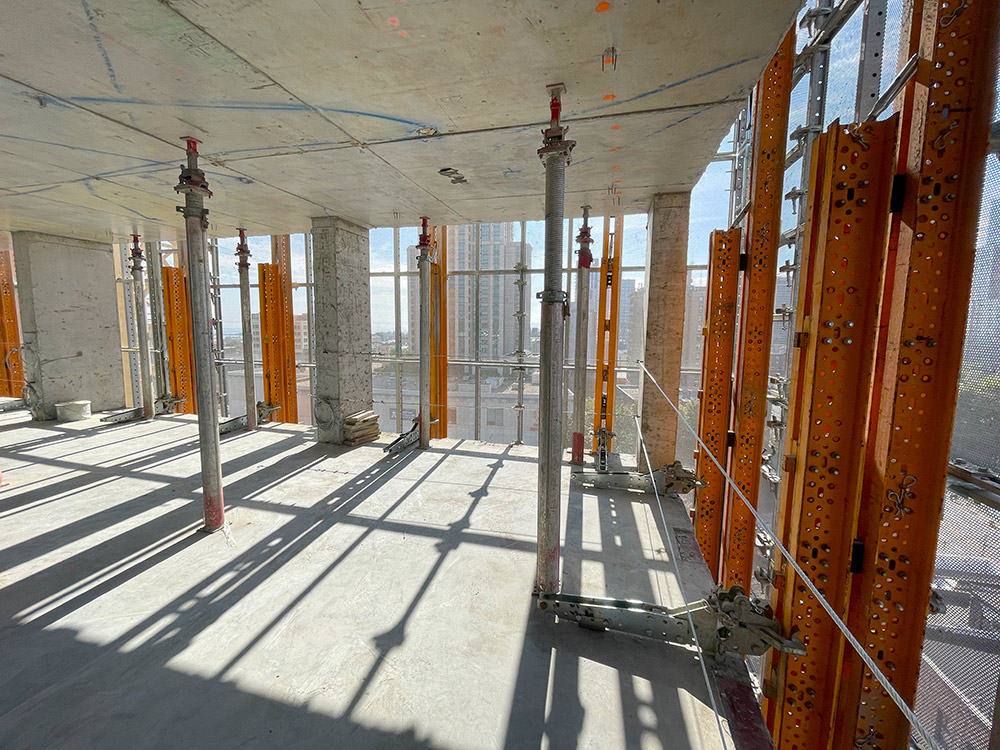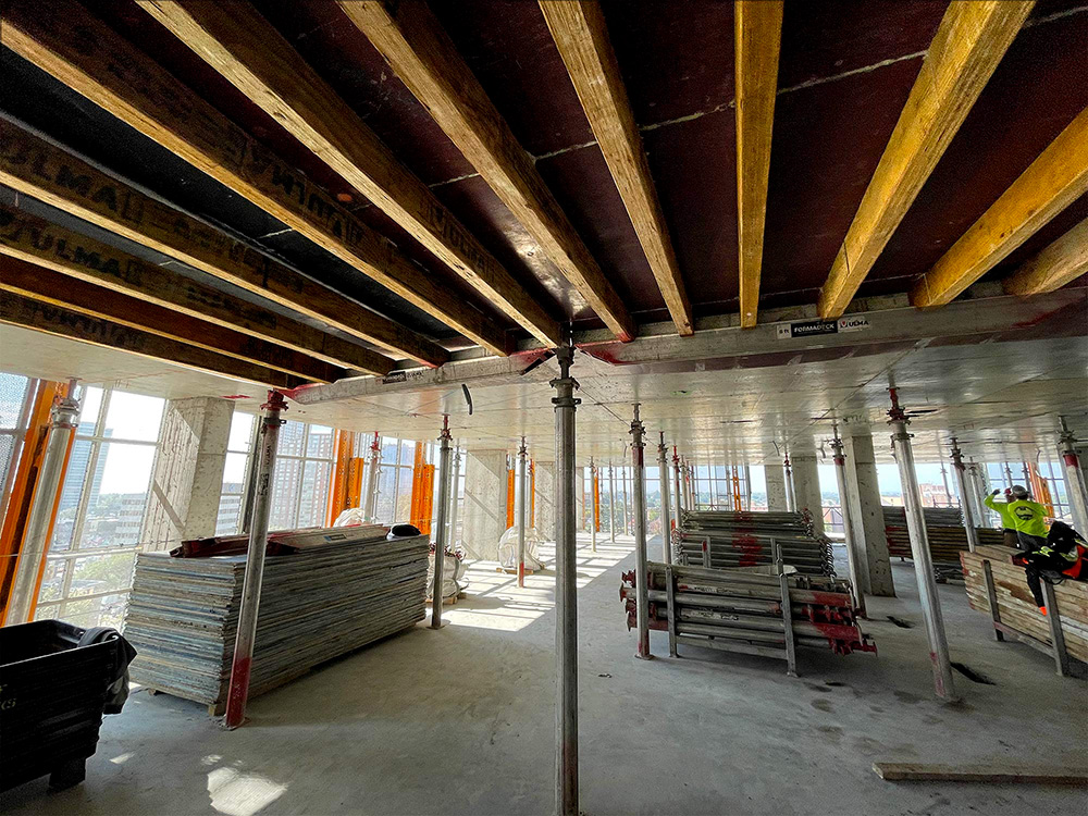 ULMA provided forming, shoring, and climbing solutions for the erection of 11 Garden. About 294,000 sq. ft. of FORMADECK and 6,000 sq. ft. of ENKOFLEX were provided for the shoring of the slabs, along with aluminum props ALUPROPS for re-shoring. The perimeter of the building was protected with ULMA’s HWS Safety Perimeter Screens, which can be lifted with a hydraulic unit or crane.