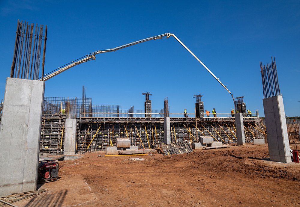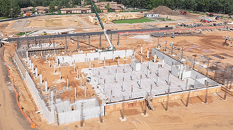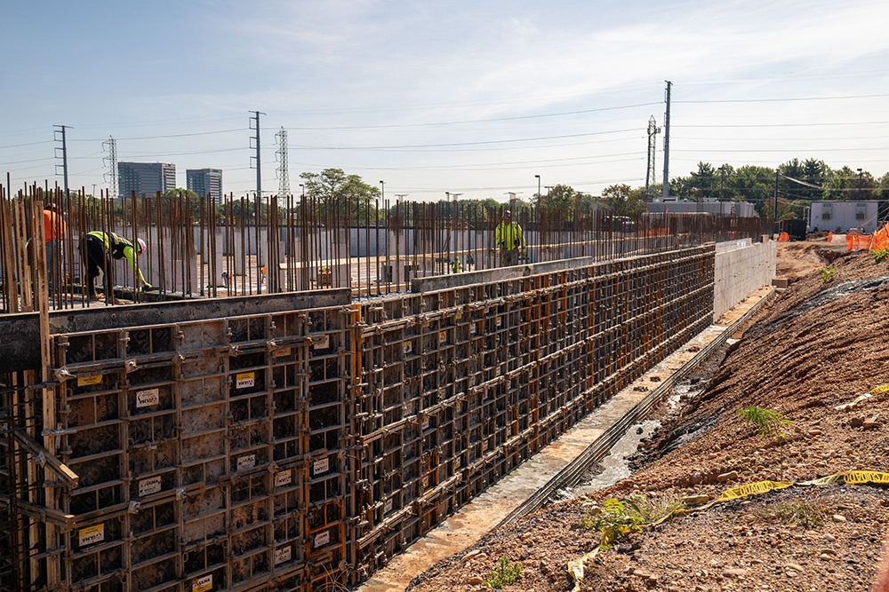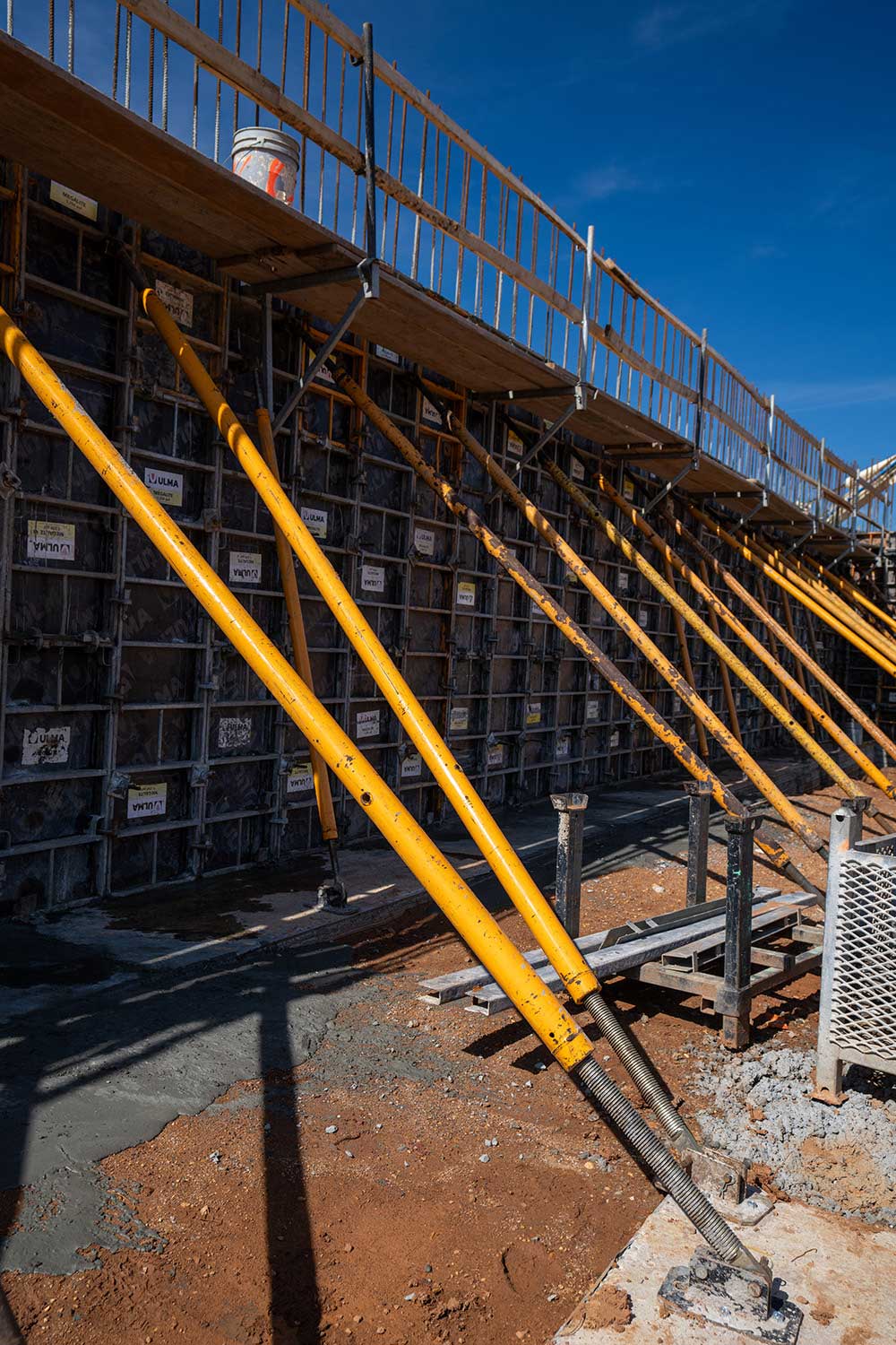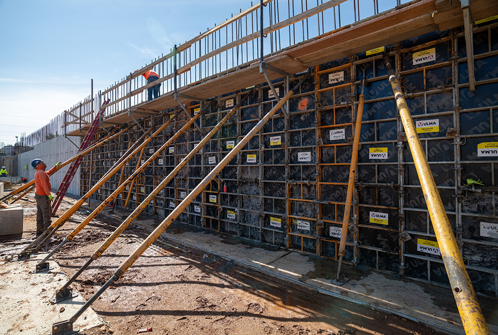 For the forming, the contractor utilized the MEGALITE system to form the cores and columns in the building up to 12 feet in height. This is a vertical formwork system for handset and gang forming applications, utilizing quick connecting clamps to join panels together.