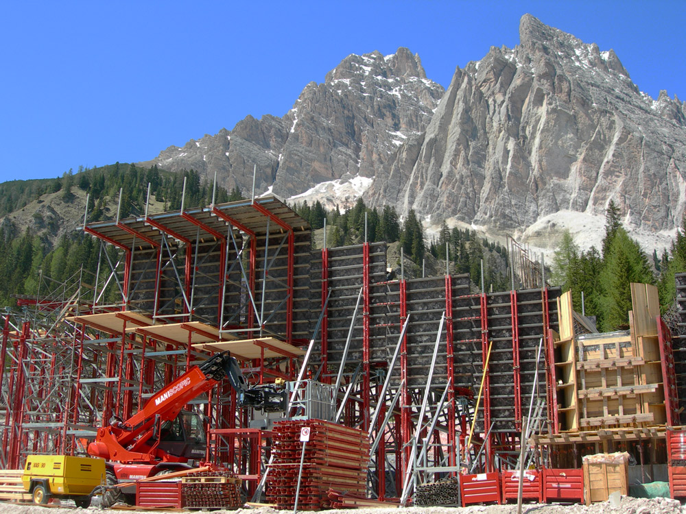 The specific curvature and the inclined geometry were formed with spindles adjustable into any direction on the shoring. This ensured a perfect adjustment without using wood templates, which brought high cost savings.