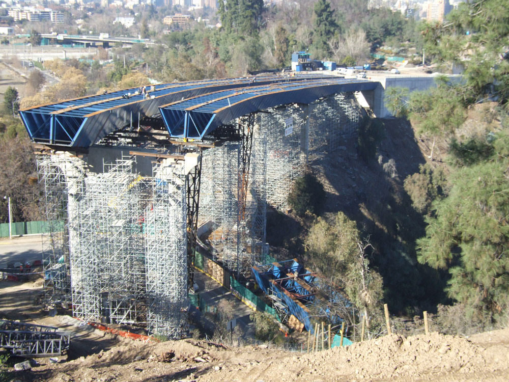 Given the uneven terrain, T-60 shoring towers were erected at different heights. A consistent surface required as support for laying the steel beams was thus provided.