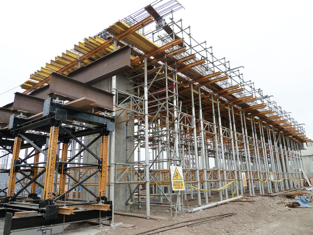 The formwork exceeding 7 meters height and of octagonal section had to withstand the high concrete pressure. For the bottom and sides of the pier caps, ENKOFORM HMK formwork shored by ALUPROP towers was used. The same systems combined with NEVI and COMAIN formwork were applied to the bottom of slab and beam.