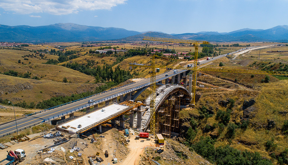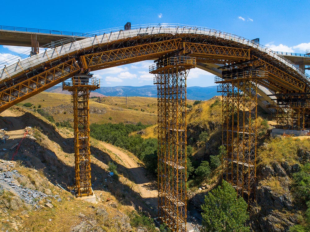 The shoring system consisted in T-500 towers reaching 40 m in height, without the need for any additional bracing. The entire arch was built with only five supports.