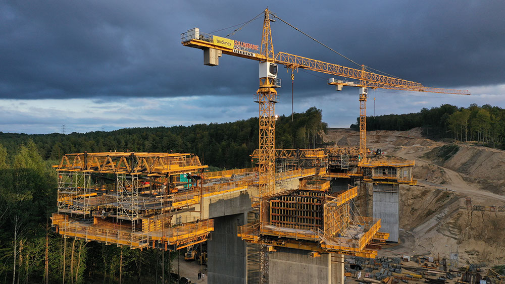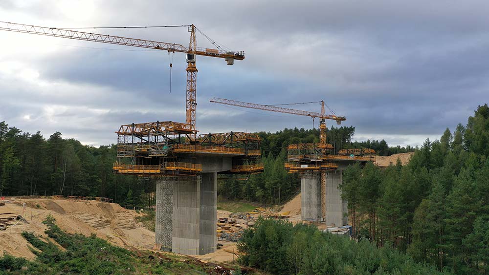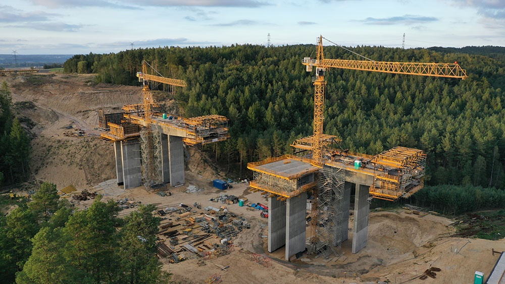 The ES-60 Viaduct comprises two carriageways of 186.8 m each. The left hand side, toward Szczecin, is 13.7 m wide, while the right measures 15.15 m. The deck is divided into three spans, two of which measure 50.9 m in length, while the third is 85 m. It varies in thickness from 4.22 m at the central piers to 2.5 m at the extremes. The deck was executed in sections of differing dimensions, according to the construction system used: the pier segments of 11 m in length, the end segments of 2 m, and the abutments of 9.4 m, while the sections poured using the balanced cantilever method were 4 m each, with 7-day work cycles.