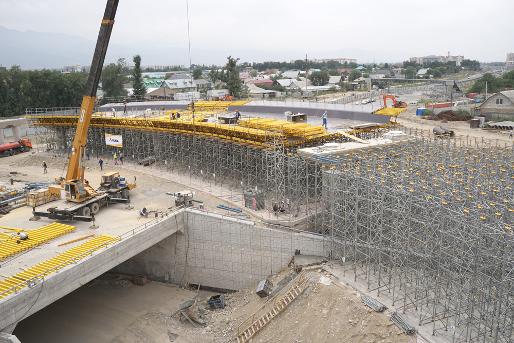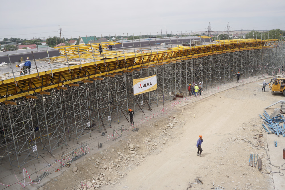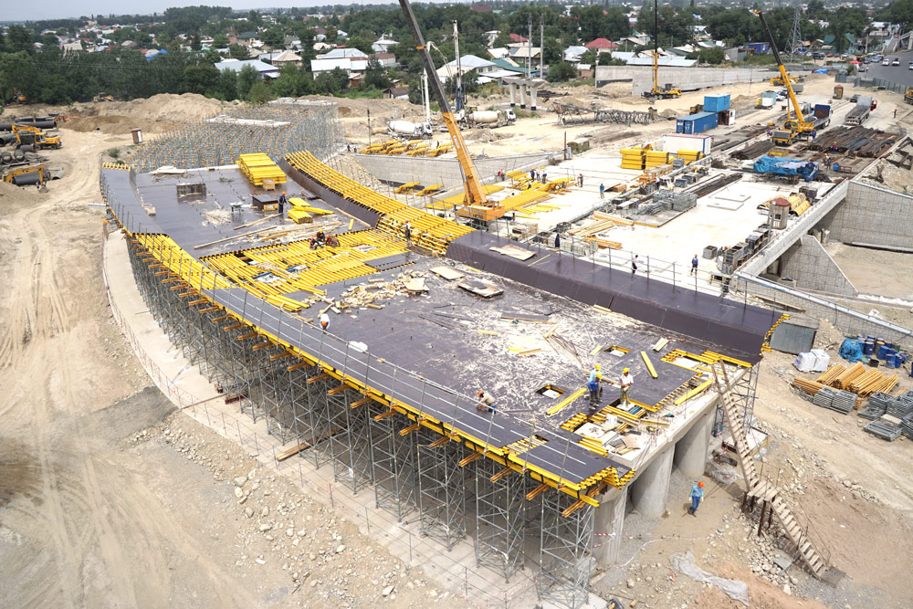 Construction of a 304.2 m long flyover at exit no. 9 over Ryskulov Street is one of 20 projects planned under the Almaty transport link network improvement programme for 2012-2018. The general contractor, BAZIS-A, entrusted ULMA Opalubka Kazakhstan with providing services for this construction project in respect of the design and delivery of formwork technology and supervision over reinforced concrete work.