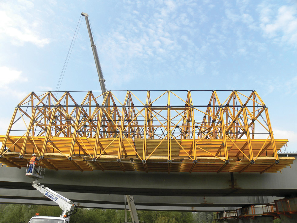 ULMA supplied the material for the construction of the steel-concrete composite bridge deck, abutments, piers, overpasses and retaining walls. A form carrier consisting of standard MK system components was used to build the bridge deck wings. This structure split into 3 modules to ease the assembly provides the necessary stiffness yet without making the structure excessively heavy. Moreover, it offers a standard custom-made solution and thus ensures maximum cost-effectiveness.