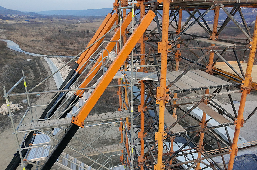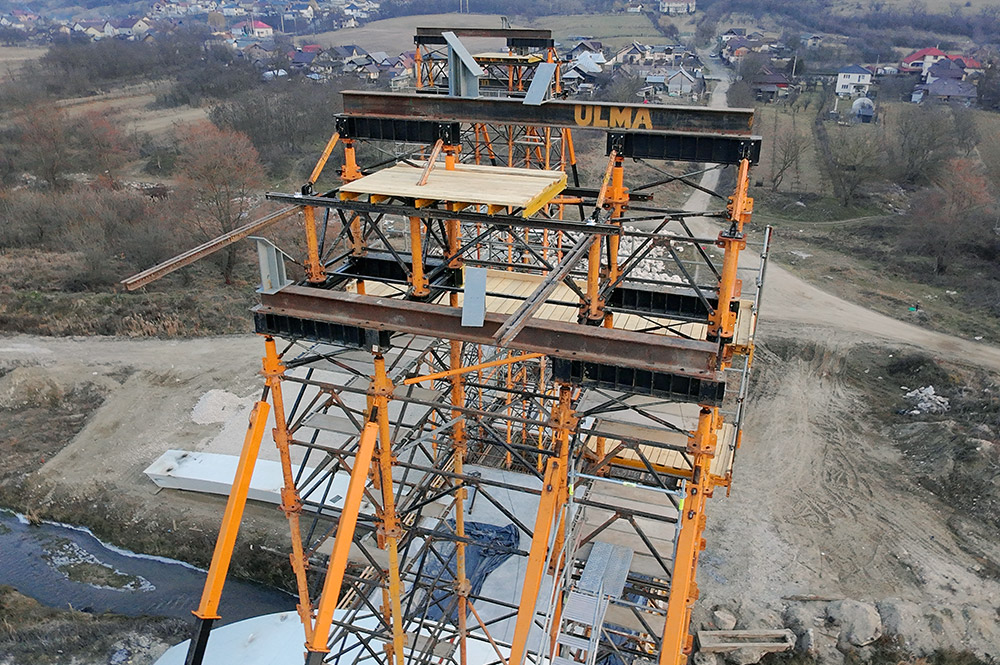 ULMA was required to design a solution for the temporary support of the segments of the steel arch structure. The design of the structure was done using T-500 Heavy duty shoring towers linked with special metallic elements that provide the requested rigidity for the loads applied.