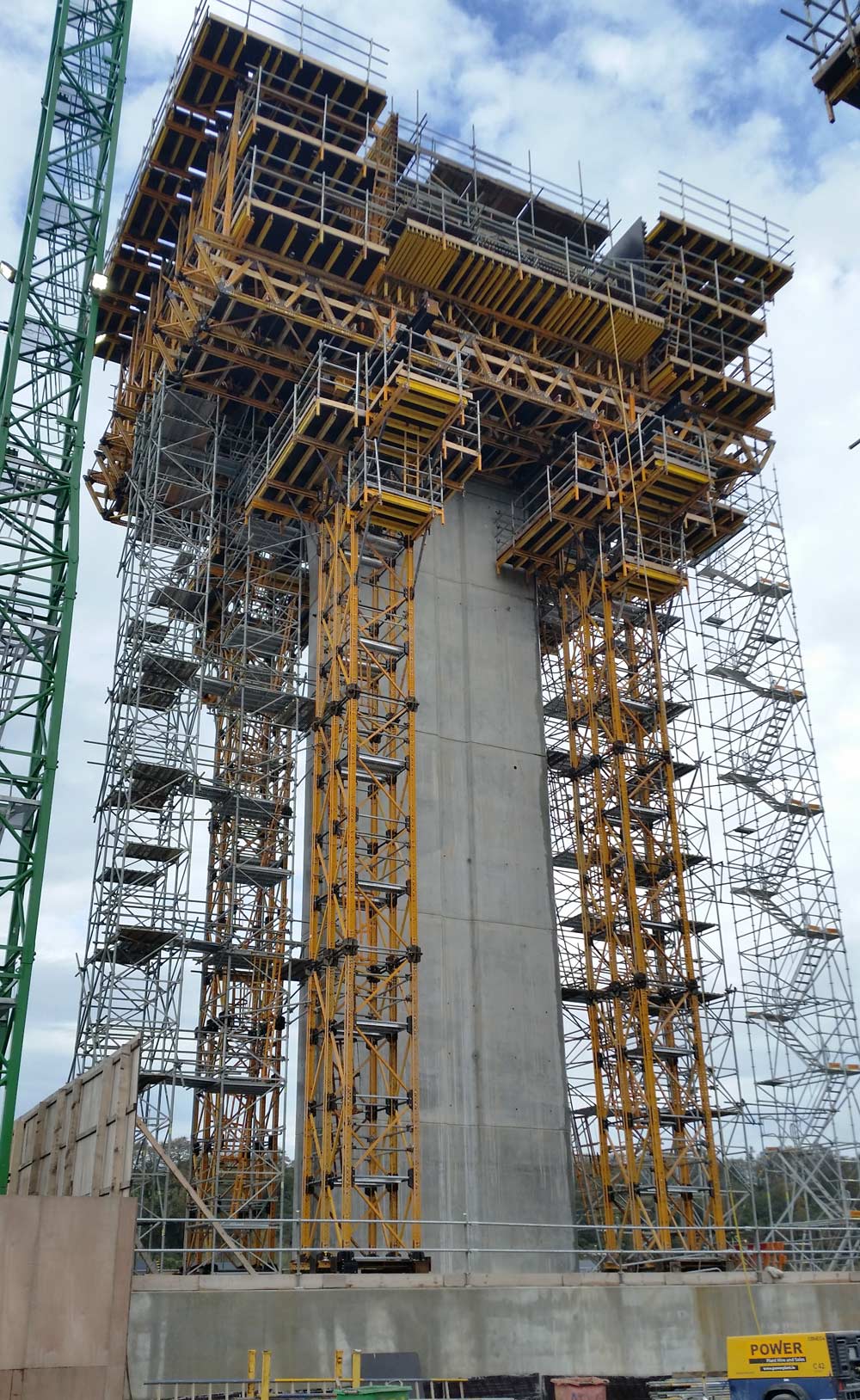 The same formwork assemblies were reused to complete the three pylons with heights ranging from 16 m to 27 m and variable sections.