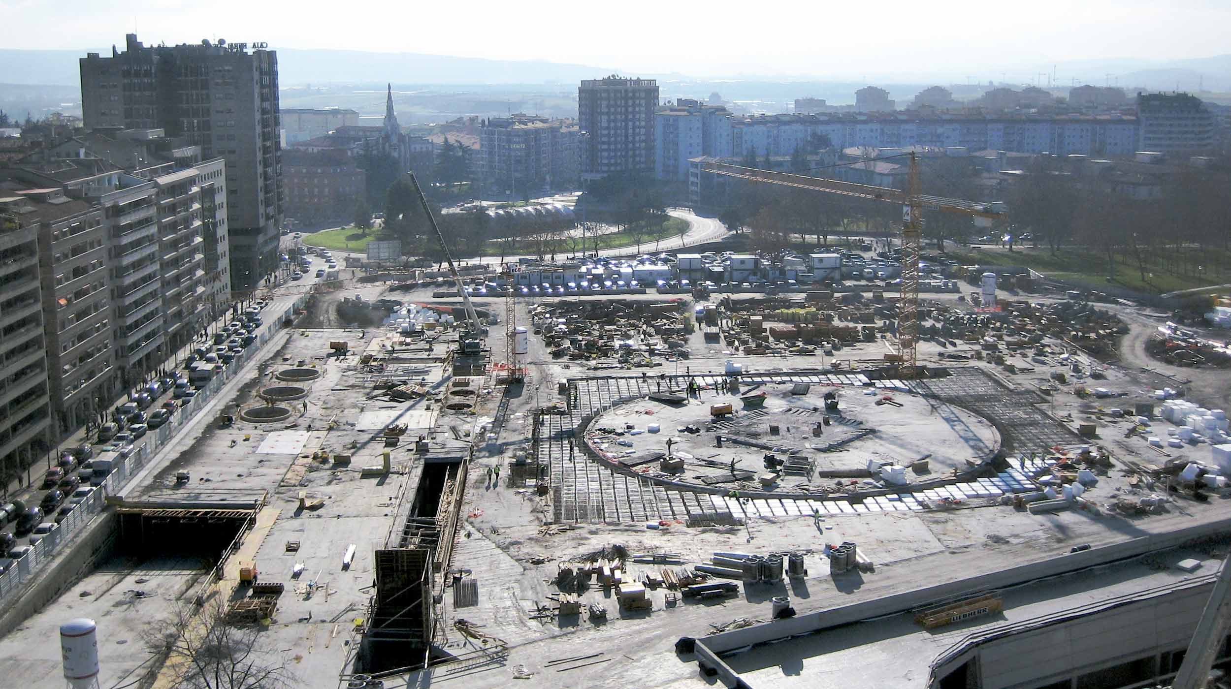 The wide spaces necessary for vehicle circulation made it necessary to adopt innovative and unique construction solutions. In fact, the most relevant element of the new station is the large circular beam that surrounds the bus parking area and that rests through radial beams on a central 6 m high and 2 m diameter column. This pre-tensioned structure, in the shape of a star, consists of 16 radial 26 m long beams cast in-situ with 2,000 tons of concrete. This configuration lets the buses freely maneuver in a bus parking area with no columns.