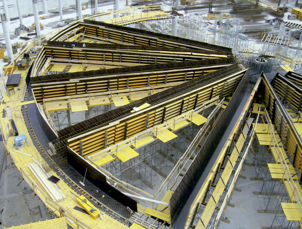 ENKOFORM HMK was used as formwork for the beams of the building's central core. This system was supported on falsework adapted to the particular geometry.