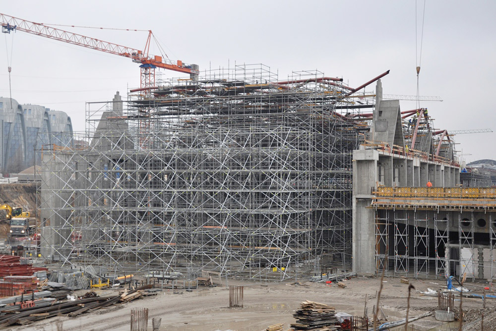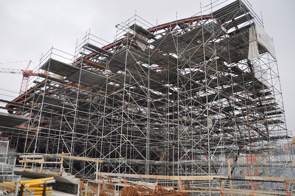 ULMA provisioned almost 200,000 m³ of BRIO Multidirectional Scaffolding to shore the three steel structures supporting the skylights that form roofs A, B, and C, measuring 80 m x 95 m, 40 m x 110 m, and 40 m x 125 m respectively.