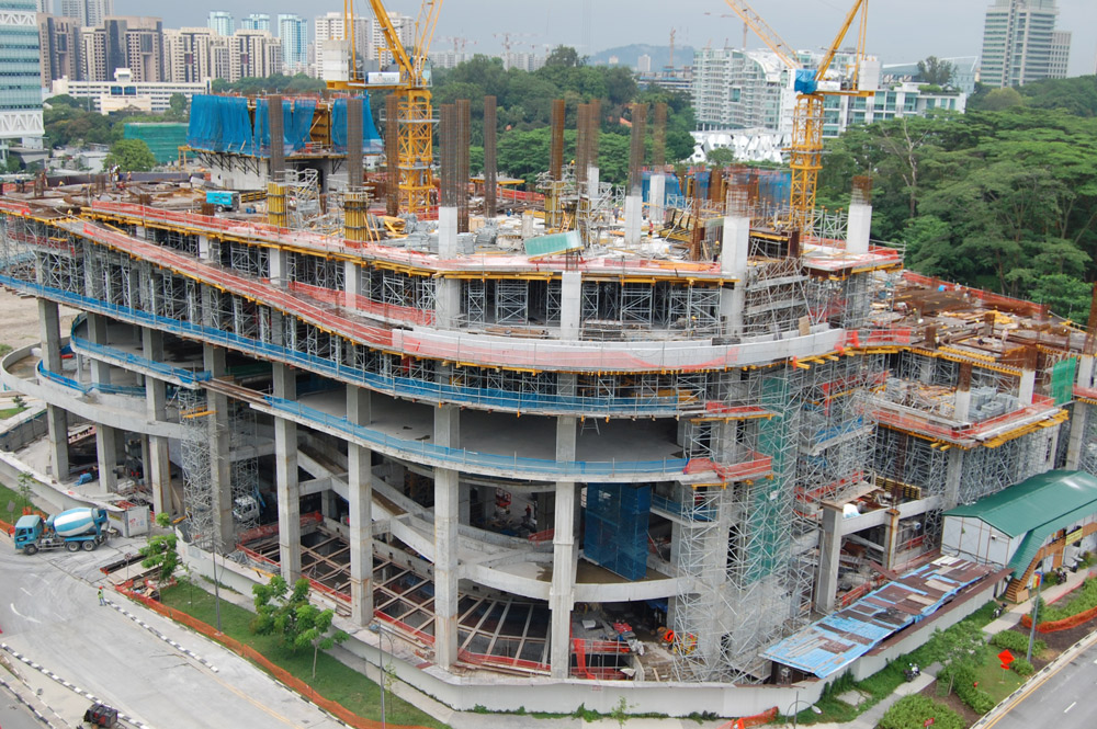 The slabs and hanging beams on the standard floors were executed with VR Tables and EP Props, whose range made it possible to adapt to the heights of each floor. This horizontal formwork was ideal for all of the slabs, and enabled a fast assembly with the minimum use of time in horizontal and vertical site movements. Additionally, on the first three floors, each of 11 m, VRTables and T-60 Shoring System were used, along with ENKOFLEX Horizontal Formwork.