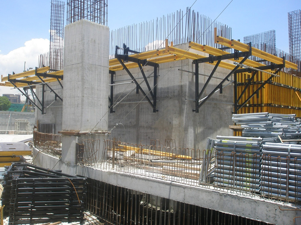 Since it consists of somewhat complex construction geometry, the walls and columns were executed with ENKOFORM V-100 Vertical Formwork and CM-220 Climbing Brackets. This waler system is made up of standard elements, primarily metal walers and timber beams that support the board, forming customized panels according to the required characteristics.