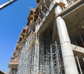 CC-4 aluminium formwork, ideal for large slab surfaces proved deal for building the main towers, the parking areas, and the commercial spaces.