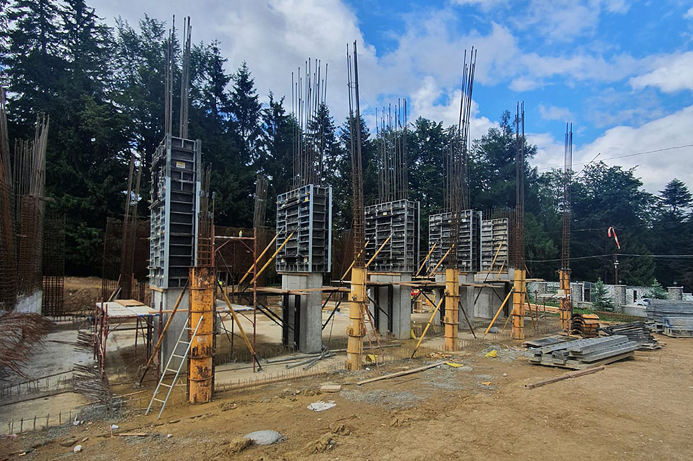 The “Holy Cross” Social and Pastoral Center of Caraiman Monastery is currently undergoing expansion through the construction of a new building, adjoining the existing facility. The project is developed on sloping terrain, with the structure starting from level -3 and comprising three basement, ground floor, and two upper levels. The new wing will include a conference hall with a capacity of 350–400 seats, several seminar and workshop rooms, as well as a library and a commemorative museum dedicated to Protosinghel Gherontie Puiu, the founder of the monastery. Additionally, the building will provide modern accommodation facilities, a kitchen with dining hall, and dedicated areas for youth programs and social-pastoral activities. This project aims to strengthen the center’s role as a place of formation, encounter, and community support, while integrating harmoniously with the existing infrastructure, which already includes dormitories, conference halls, a canteen, and recreational spaces.