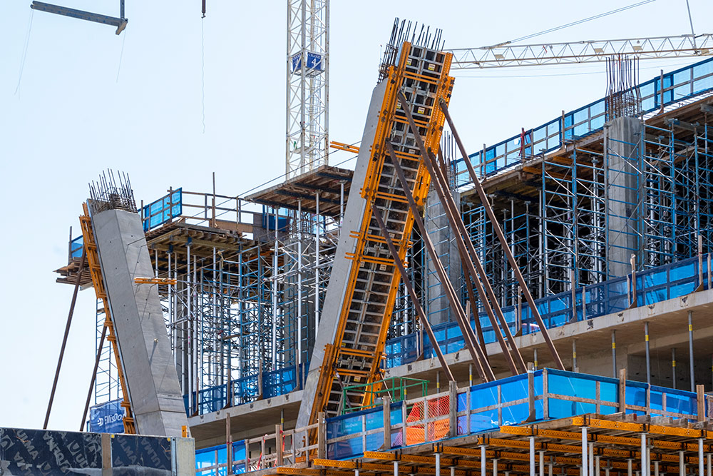 The VR-L Tables with ALUPROP and MK-120 walers have created a shoring and formwork system for the concreting of slabs up to 7 m high. Thanks to its lower weight, number of components, and higher load capacity compared to traditional shoring systems, ALUPROP has facilitated the movement of materials on-site more efficiently with less manpower and machinery.