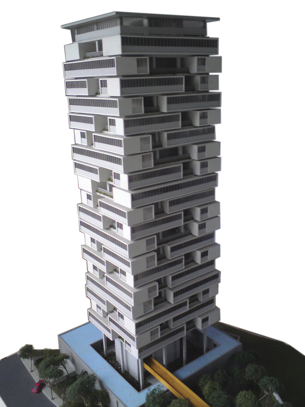 It occupies an area of 2,797.63 m2 and has 62 apartments spread over 22 floors.