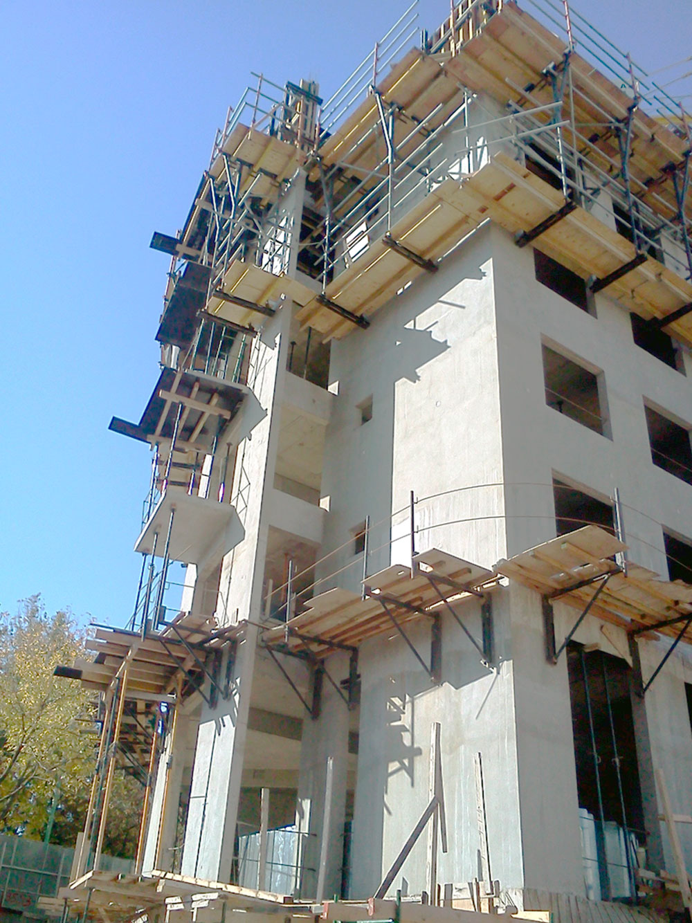 - CF-170 brackets for the perimeter: The climbing brackets with 3 levels of platforms covered the 66 m long perimeter and provided high safety for the workers.