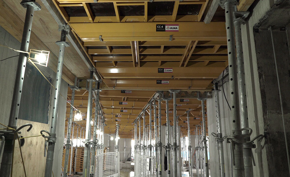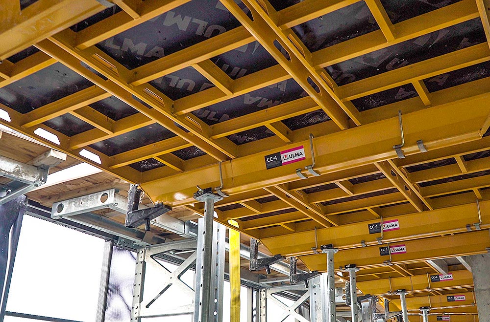 The interactive 3D model supported by BIM methodology has allowed ULMA to interface continuously with the client so as to guide the most efficient use of slab formwork possible. In the face of unique challenges, such as significant corbels, this system provided clear visual models of ULMA’s solution for post-tensioned slabs that required working platforms. BIM technology gave the client the ability to quickly solve any problem that arose by relying on a comprehensive and easily understood 3D visual model.