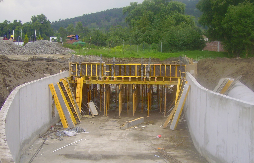 While the channeling work was being carried out, two bridges were made, one for pedestrians and the other for vehicles, with a 7 x 10 meter surface, in order to provide a crossing way over the Chiquito river. ENKOFLEX system was used for building the slabs and NEVI system for the columns and walls.