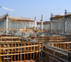The slabs and hanging beams were executed with ENKOFLEX formwork supported on T-60 Shoring System and ALUPROP props.An additional row of support towers was placed along the hanging beams, making it possible to create a wide and safe working platform.